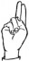 На ћирилици написано БОЈАН РЕГОДИЋ састоји се из 12 слова [?]. Исписано ћириличном једноручном азбуком за глувонеме: